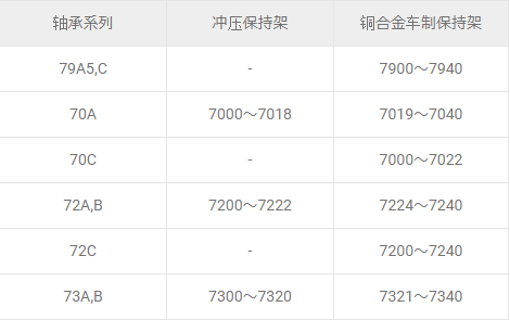 承,可以使用預(yù)壓方法提高剛性,因此,適用于高旋轉(zhuǎn)精度的機(jī)床主軸等。一般,接觸角30°(代號A)及40°(代號B)的角接觸球軸承保持架,依照(圖)。但根據(jù)不同的條件也使用合成