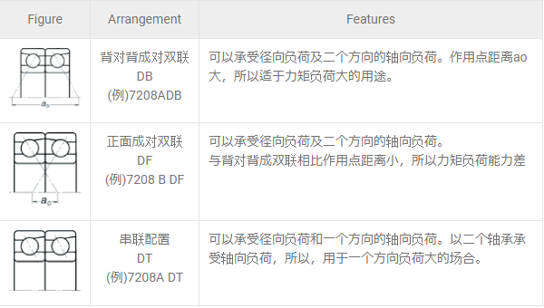 外,角接觸球軸承負(fù)載徑向載荷時,由于該載荷含有軸向成分,所以,一般都是將數(shù)個軸承組合起來使用,如2個、3個或4個等。NSK備有并提供全規(guī)格的角接觸球軸承。